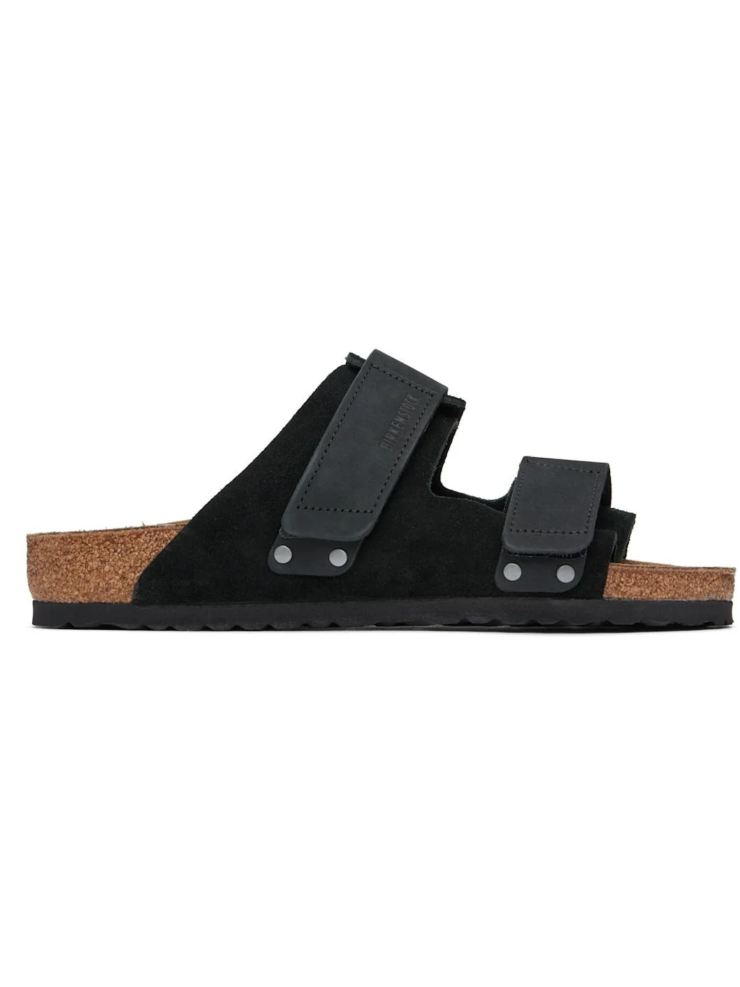 Suede and nubuck sandals in black. · Open toe · Velcro straps at vamp · Logo embossed at vamp and inner side · Logo printed at molded suede footbed · Cork-latex midsole · Treaded rubber sole Supplier color: Black Upper: leather. Sole: cork, rubber. Made in Germany 251513F124012
