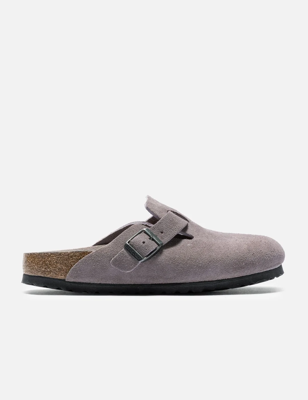 - Birkenstock - Boston BS - Suede upper - Buckled strap with embossed logo - Suede insole - Anatomically shaped soft cork-latex footbed - EVA outsole - Made in Germany - Color: Faded Purple Tonal - Material: Suede, Cork, EVA - See more Sandals and Shoes - Vendor Code: 1031577