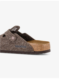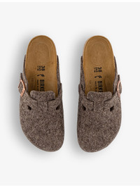 PRODUCT DETAILS - Birkenstock wool clogs - 100% wool - Slips on - Round toe, strap and buckle detail to the front, branding to the buckle, anatomically-shaped foam footbed - Specialist leather clean - Made in Germany - Upper: 100% wool - Lining: 100% suede - Sole: 100% EVA Ref: R04246579