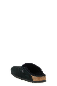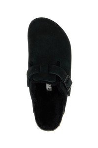 cod. 259883BLACK Suede Boston sabots, shearling lining, strap with adjustable metal buckle, anatomically shaped cork and latex footbed, EVA sole. Color: Black Size & Fit: EU UNISEX - narrow fit Composition: 100% calfskin leather (Bos Taurus) Made in: Germany PROMO CODE NOT APPLICABLE