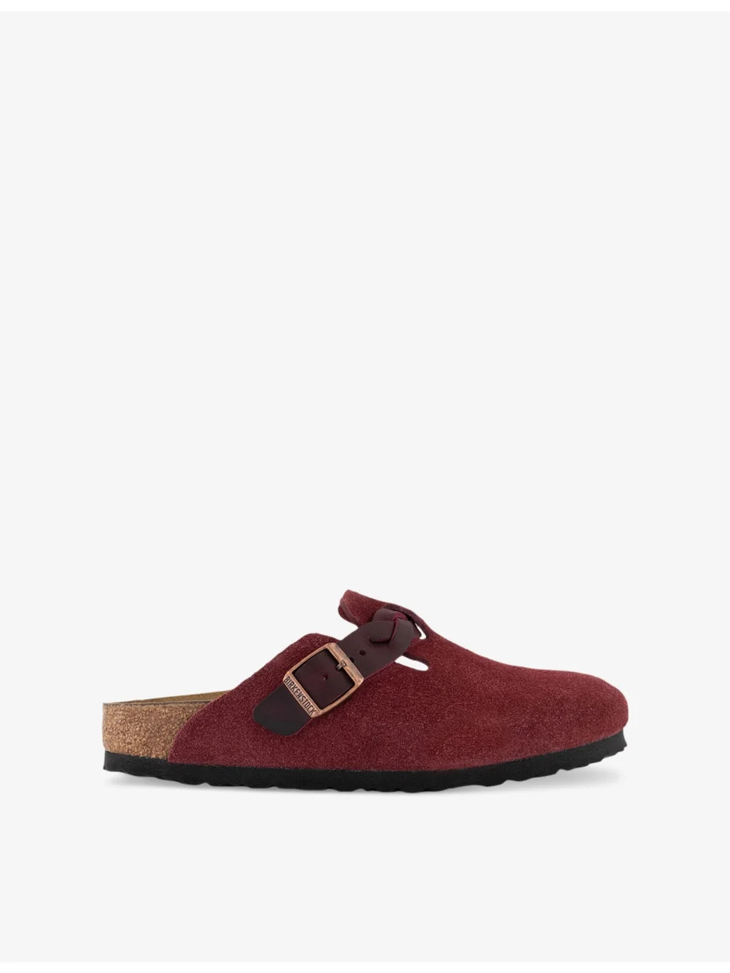 PRODUCT DETAILS - Birkenstock suede clogs - 100% suede - Slips on - Round closed toe, open back, buckle strap at front, branded hardware, signature moulded EVA sole, embossed logo at side - Specialist leather clean - Upper: 100% suede - Lining: 100% suede - Sole: 100% cork Ref: R04487106