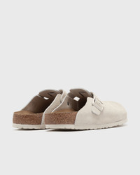 The Birkenstock Boston is a true classic that can be worn all year round. Its upper material is made from soft suede. An anatomically shaped soft footbed with an additional foam insole ensures perfect comfort. - Anatomically shaped cork-latex footbed - Upper material: suede - Sole: EVA - Strap with individually adjustable pin buckle Article Number: 1027667 Gender: Men, Women Color: ANTIQUE WHITE Material: 50% Leather, 50% Corc