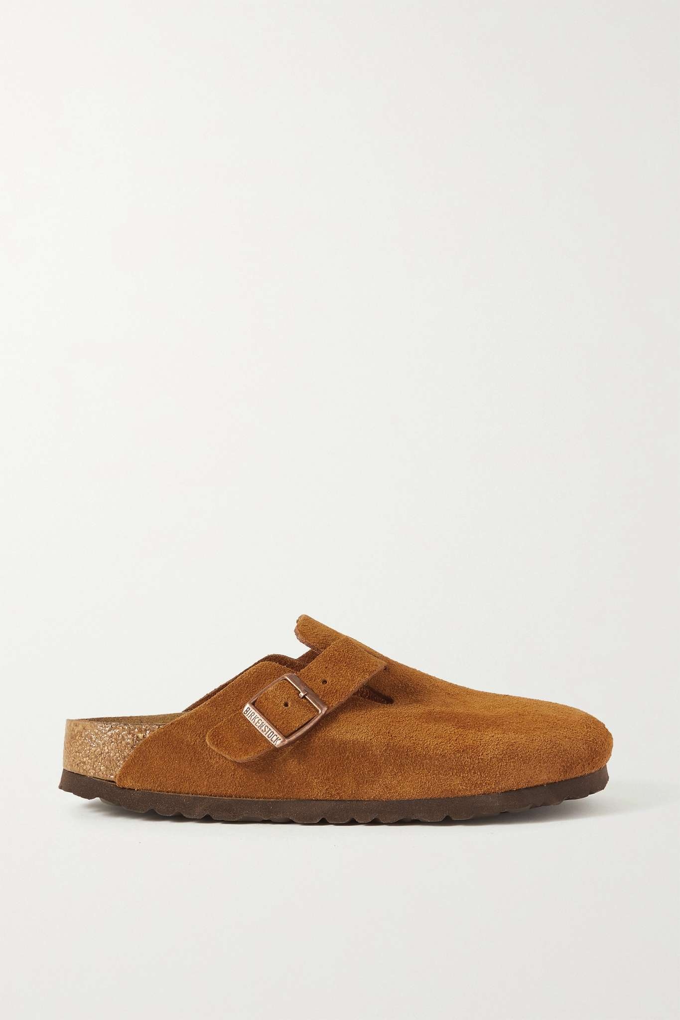 EDITORS'NOTES Debuted in 1977, Birkenstock's iconic 'Boston' slippers are still so highly regarded for their comfort and ease. This pair has been made in Germany from suede and set on ergonomic cork soles designed to mold to your feet over time. They also have the brand's signature buckled strap at the side. SIZE & FIT - Fits true to size, take your normal size - Only available in full sizes, go up to the nearest whole size if you take a half size - Italian sizing DETAILS & CARE - Sole measures approximately 25mm/ 1 inch - Tan leather (Calf) - Buckle-fastening strap - Designer color: Mink - Birkenstock follows its own size guide, therefore the size stated on the box will differ from the one provided in our size chart. To receive your correct fit, please refer to Size & Fit notes