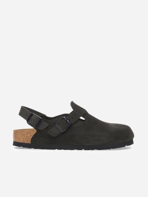 Introducing Tokio, the stylish closed-toe sandal inspired by clogs, making its comeback since its 1987 debut. Perfectly designed for functionality and comfort, it features an adjustable heel and arch strap. Crafted with luxurious, durable suede uppers, the sandals offer an anatomically shaped BIRKENSTOCK cork-latex footbed covered in smooth, color-matched premium nappa leather. The updated EVA outsole with a 3mm edge ensures comfort and flexibility, making Tokio the perfect blend of fashion and practicality for the modern woman. Size & Fit: This shoe runs true to size Narrow fit Details: Suede Upper BIRKENSTOCK Footbed Sizing: UNISEX Article Number: 1028348 Product color: Black