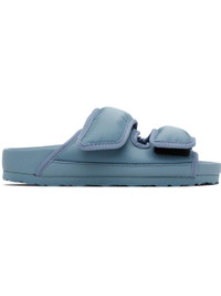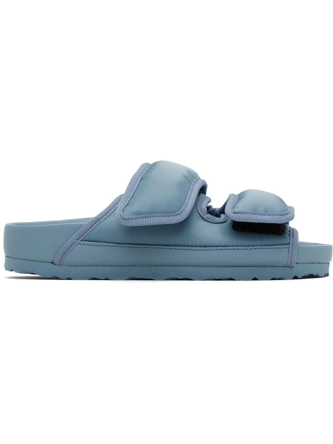Padded nylon twill flat sandals. · Grosgrain trim throughout · Velcro straps at vamp · Covered and molded cork footbed · Treaded rubber sole Supplier color: Faded denim Upper: nylon. Sole: cork, rubber. Made in Germany 252513F124021