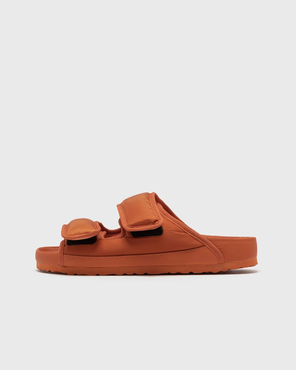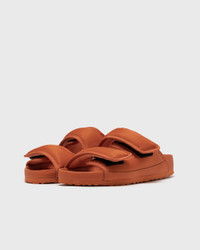 The Arizona CosNy EXQ SYN from the 1774 collection by Birkenstock offers a modern reinterpretation of the classic Arizona style. It features a padded nylon two-strap design that is reminiscent of a cozy puffer jacket with its proportions and material. A molded footbed provides signature comfort, while hook-and-loop closures ensure a secure fit. - Padded nylon straps - Hook-and-loop closure - Molded footbed Article Number: 1030378 Gender: Women Color: BURNT ORANGE Material: Upper material: 100% Synthetic/Textile