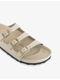 PRODUCT DETAILS - Birkenstock faux-leather sandals - 100% synthetic - Buckle fastening - Round open toe, three buckled straps, branded hardware, moulded footbed, flex sole - Wipe with a clean, dry cloth - Upper: 100% synthetic - Lining: 100% cork - Sole: 100% EVA Ref: R04455472