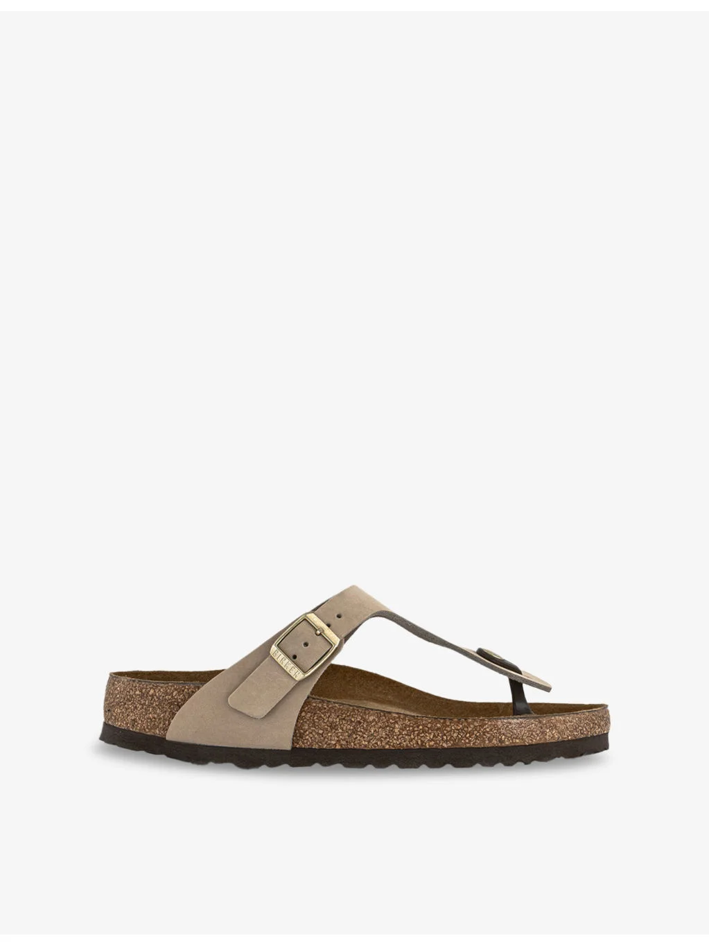 PRODUCT DETAILS - Birkenstock leather sandals - 100% leather - Slips on - Round open toe, single thong straps at front, logo engraved hardware, contrast footbed, raised jagged sole - Specialist leather clean - Upper: 100% leather - Lining: 100% cork - Sole: 100% EVA Ref: R04456716