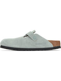 Suede slip-on loafers in gray. · Pin-buckle strap at vamp · Logo embossed at inner side · Logo printed at molded footbed · Suede lining · Cork-latex midsole · Treaded rubber sole · Logo-engraved hardware Supplier color: Pure sage Upper: leather. Sole: rubber. Made in Germany 251513F121025