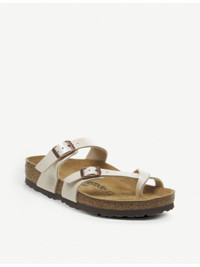 PRODUCT DETAILS - Birkenstock Mayari faux-leather sandals - Adjustable strap fastening - Almond toe, cross toe design, contoured footbed - Birko-Flor upper, suede lining, cork footbed, EVA sole Ref: 843-10036-1940813388
