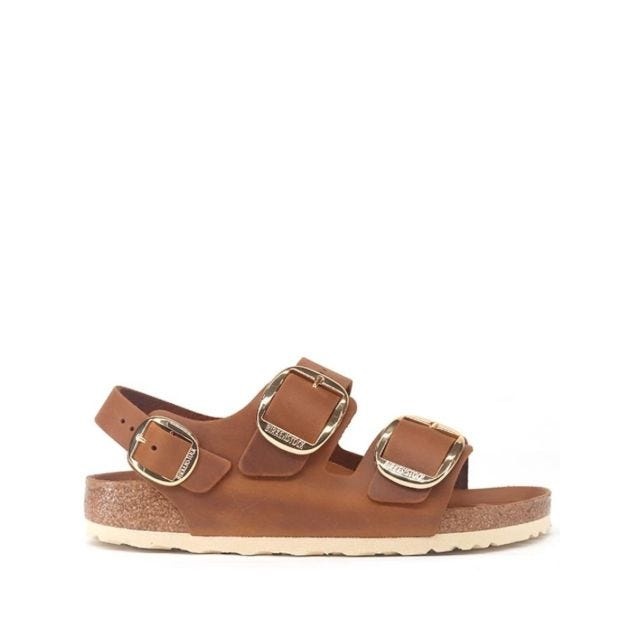 Product Code: 1024067COGNAC Gold-colored details Double buckle closure Ankle buckle closure Round toe Logo insole Contoured footbed Flat rubber sole Exterior: 100% leather Lining: 100% leather Sole: cork 100% DETAILS Made in Italy Colour: brown SIZE AND FIT Heel 2.5 cm Sole height 1.5 cm
