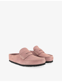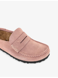 PRODUCT DETAILS - Birkenstock suede clogs - 100% suede - Closed round toe, moccasin style, penny strap, cushioning midsole, raised seams, branded footbed - Specialist leather clean - Upper: 100% suede - Lining: 100% suede - Sole: 100% cork Ref: R04579851