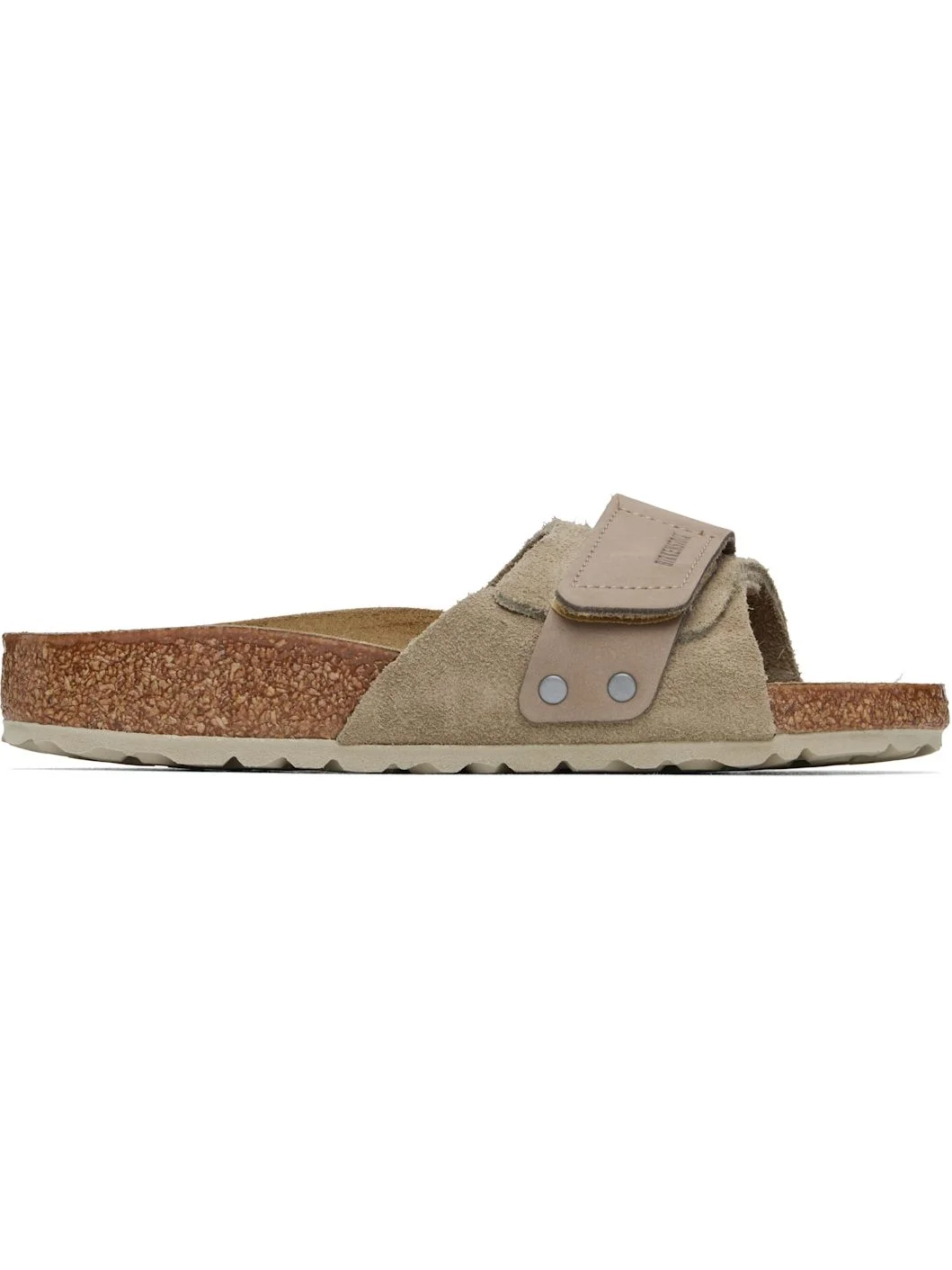 Suede and nubuck sandals in taupe. · Open toe · Layered velcro straps at vamp · Logo embossed at vamp and inner side · Logo printed at molded suede footbed · Cork-latex midsole · Treaded rubber sole Supplier color: Taupe Upper: leather. Sole: cork, rubber. Made in Germany 251513F124013