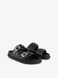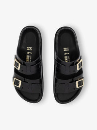 PRODUCT DETAILS - BIRKENSTOCK leather sandals - 100% leather - Buckle fastening - Open round toe, two adjustable metal pin buckle, moulded footbed, anatomically shaped cork-latex footbed - Specialist leather clean - Upper: 100% leather - Made in Germany - Lining: 100% leather - Sole: 100% cork, 100% rubber Ref: R04286376