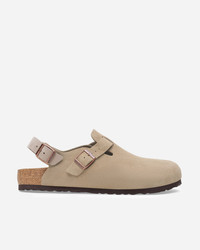 Introducing Tokio, the stylish closed-toe sandal inspired by clogs, making its comeback since its 1987 debut. Perfectly designed for functionality and comfort, it features an adjustable heel and arch strap. Crafted with luxurious, durable suede uppers, the sandals offer an anatomically shaped BIRKENSTOCK cork-latex footbed covered in smooth, color-matched premium nappa leather. The updated EVA outsole with a 3mm edge ensures comfort and flexibility, making Tokio the perfect blend of fashion and practicality for the modern woman. Size & Fit: This shoe runs true to size Narrow fit Details: Suede Upper BIRKENSTOCK Footbed Sizing: UNISEX Article Number: 1028323 Product color: Taupe