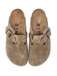 taupe brown suede leather side buckle fastening round toe slip-on style branded insole cork sole DETAILS Composition 100% LEATHER Model ID 1026694-TAUPE