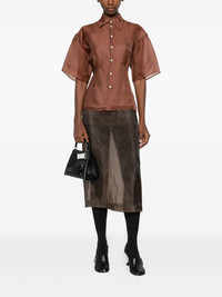 Verse short-sleeved buttoned shirt Highlights - Burnt umber - Button fastening - Short sleeves - Classic collar - Semi-sheer finish - Panelled construction Imported Composition Silk 100% SIZE & FIT Model measurements Height 5 ft 10 in(1.78 m) Bust/Chest 31.49 in(80 cm) Hips 37 in(94 cm) Waist 23.62 in(60 cm) Washing instructions Dry Clean Only