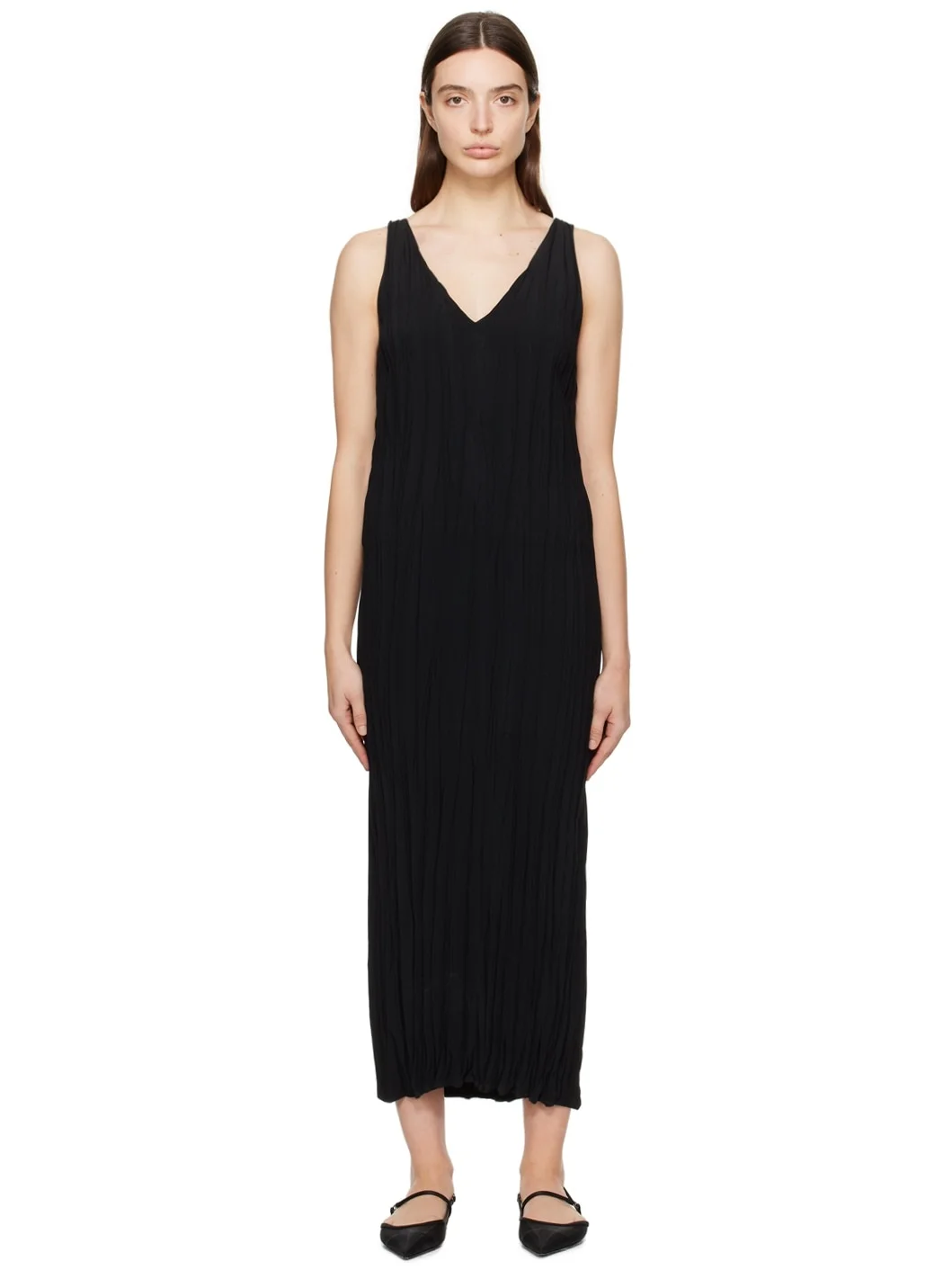 Garment-pleated acetate- and viscose-blend crepe dress. · V-neck · Fixed shoulder straps Supplier color: Black 50% acetate, 50% viscose. Made in Portugal 241734F055009