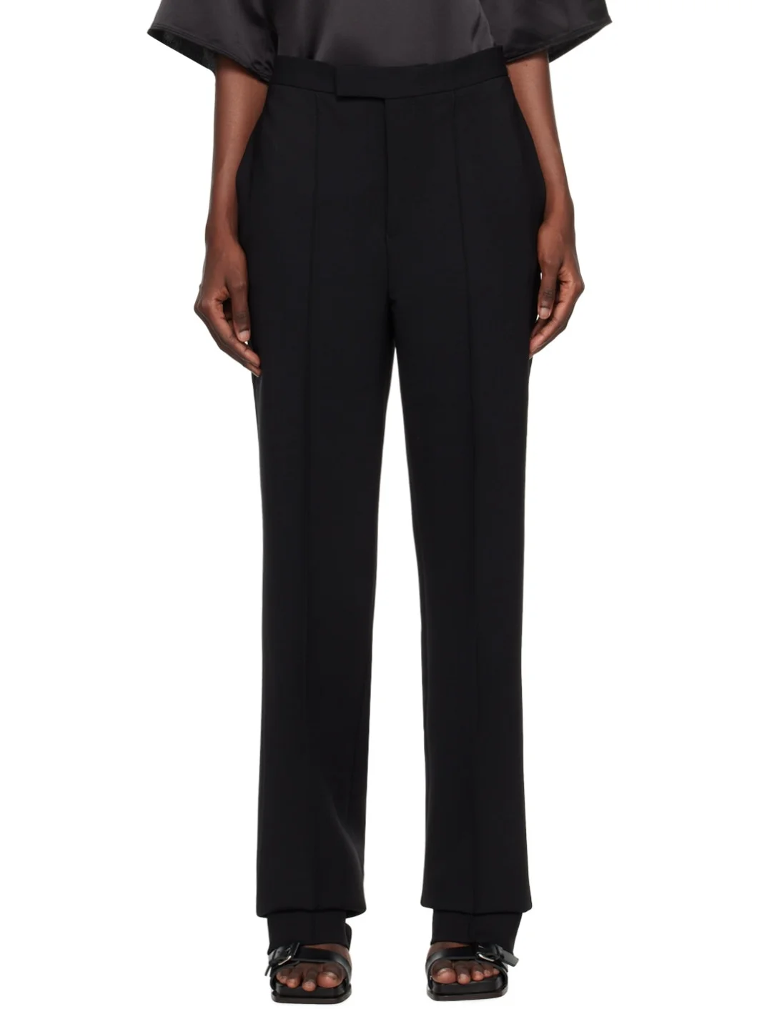 Plain-woven stretch wool-blend trousers. · High-rise · Three-pocket styling · Zip-fly · Pinched seams at front · Darts at back waistband Supplier color: Black 94% wool, 4% elastane, 2% polyamide. Made in Portugal 232734F087001