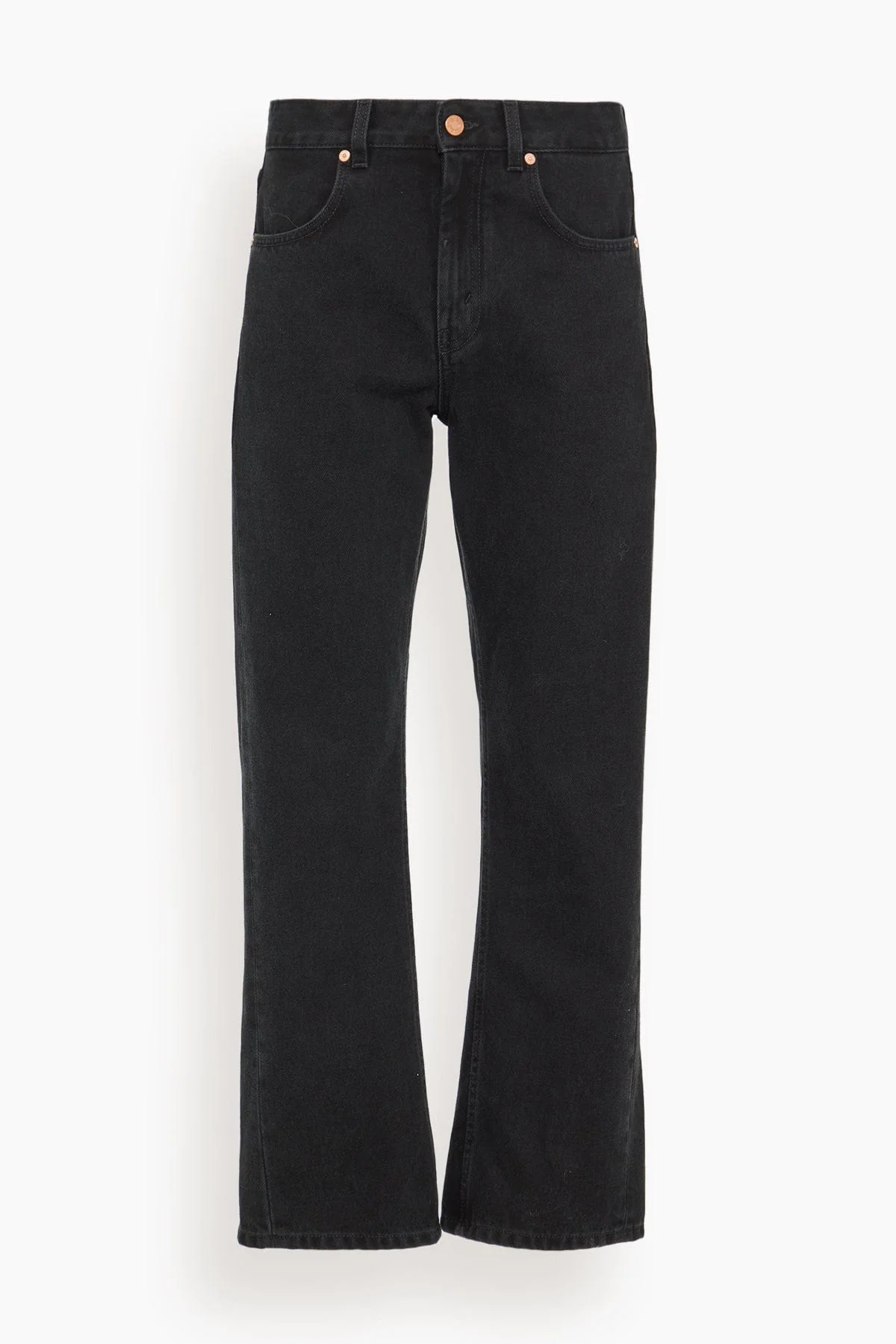 The Bite Studios Curved Organic Cotton Denim in Washed Black feature subtly curved side seams for a more flattering shape and a straight, cropped fit. Features a mid-rise waist, zip fly, and classic five-pocket construction. Crafted from mid-weight organic cotton denim in a washed black. FIT DESCRIPTION MODEL MEASUREMENTS - Fits true to size, take your normal size - For a tighter look size down - Ankle length - Rigid denim will soften with wear - 100% Organic Cotton - Made in Italy - Delicate hand wash - Harriet is wearing a size 25 - Bust: 32" - Waist: 24" - Hips: 30.5" - Height: 5’8.5”