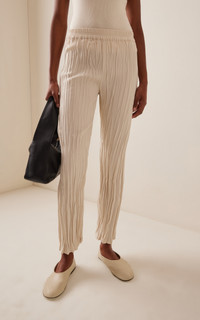 Founded by Swedish husband-and-wife team William Lundgren and Veronika Kant, BITE (or ‘By Independent Thinkers for Environmental Progress’) Studios marries uncompromising quality with organic, low-impact textiles. The 'Maisie' pants are defined by the crinkled plissé folds that decorate and texturize their slender-cut silhouette. Style it with the matching shirt. PRODUCT DETAILS - Spring/Summer '24 - Pull on - Composition: 50% Acetate, 50% Viscose - Dry clean - Imported SIZE & FIT - Our model is wearing a size UK 6 - Model is 5'10" with a 31" bust, 23.5" waist, and 33.5" hip - Designed for a slim fit
