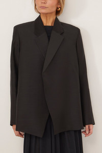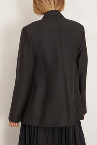 The Bite Studios Polus Suit Jacket features the simplistic details you love from this designer. This blazer has a boxy silhouette in an organic silk and responsibly sourced wool faille. Wear yours with jeans and a t-shirt. FIT DESCRIPTION MODEL MEASUREMENTS - Fits true to size, take your normal size - Blazer - Boxy silhouette - Open double breasted closure - Notched lapel - 75% Organic wool, 25% silk - Charley is wearing a size 34/ 2 US - Bust: 33” - Waist: 25” - Hips: 34” - Height: 5’8”