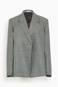 The Bite Studios Polus Wool Suit Jacket features their signature silhouette. You'll love the crossover front detail of this wool blazer with a tailored silhouette. Wear yours with the matching trousers and boots. FIT DESCRIPTION MODEL MEASUREMENTS - Fits true to size, take your normal size - Blazer - Tailored silhouette - Crossover front - Sculptural back - Notched lapel - 100% Responsibly Sourced Wool - Celeste is wearing a size 34/ 2 US - Bust: 35" - Waist: 25.5" - Hips: 34" - Height: 5’10”