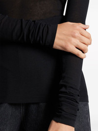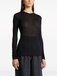 semi-sheer cotton T-shirt Highlights - Black - Cotton - Jersey texture - Semi-sheer construction - Ribbed edge - Crew neck - Long sleeves - Straight hem Imported Composition pure cotton 100% SIZE & FIT FittingInformation Designed for a close fit throughout Made from a lightweight non-stretch fabric, this piece offers minimal elasticity when worn This piece fits true to size – take your usual size Washing instructions Read Manufacturer Guidelines