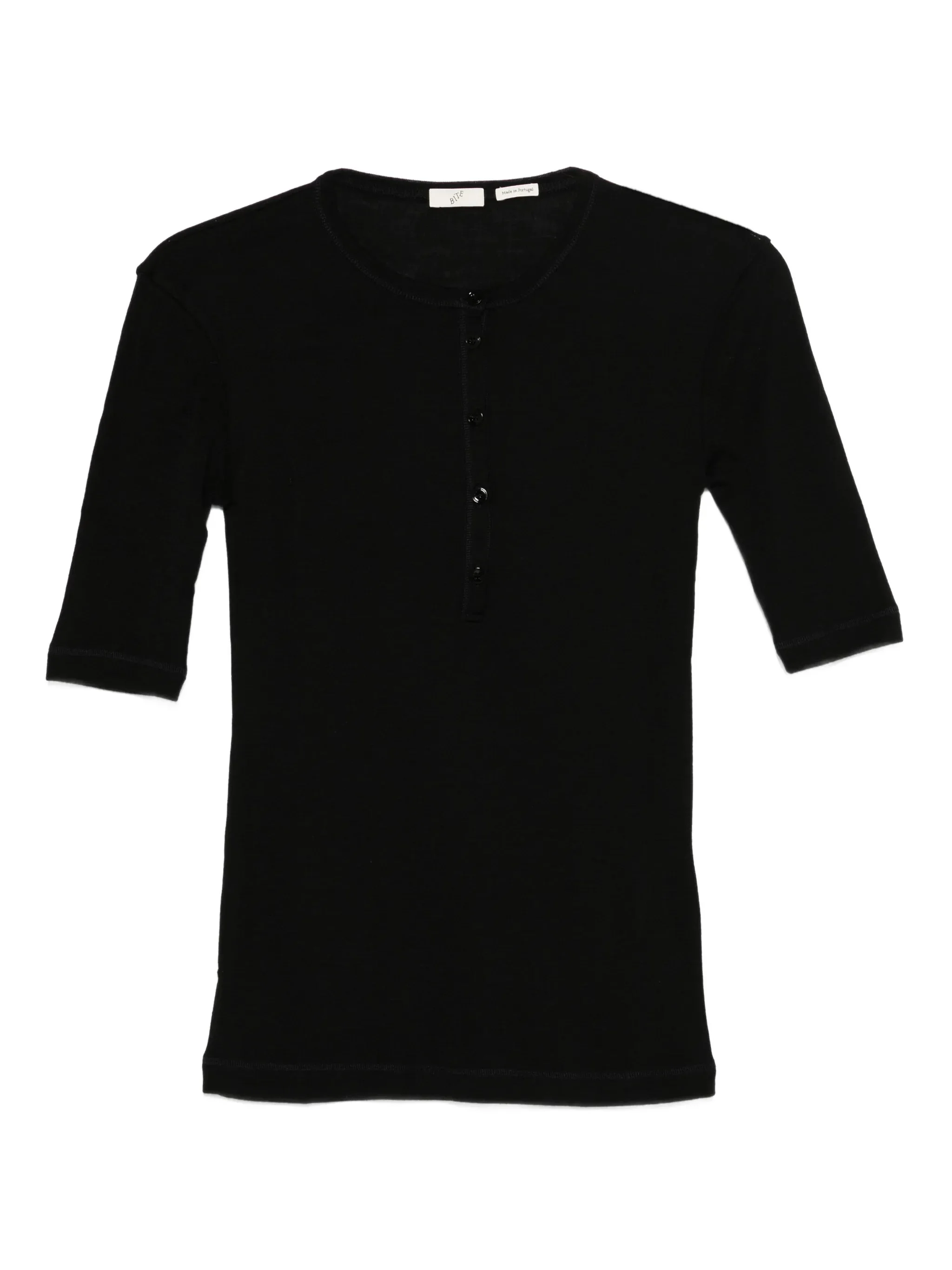 black Henley neck short sleeves fine knit straight hem - Color: BLACK - Made in: Portugal - Designer Style ID: 1111657 0999 Composition and care Wool: 100.0%