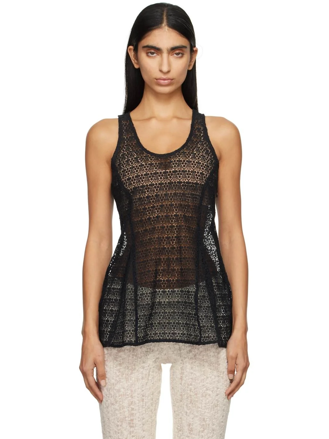 Sheer cotton lace tank top. · Scoop neck · Godet panels at front and back hem Supplier color: Black 100% cotton. Made in Portugal 242734F111001