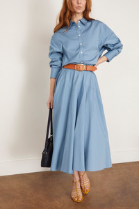 The Bite Studios Vera Cotton Poplin Shirt will be a staple in your spring wardrobe. This organic cotton poplin button down features voluminous sleeves and a classic point collar. Wear yours with the matching skirt and flats. FIT DESCRIPTION MODEL MEASUREMENTS - Fits true to size, take your normal size - Button down shirt - Straight silhouette - Voluminous sleeves - Point collar - 100% Organic cotton - Jessica is wearing a size 34/ 2 US - Bust: 30" - Waist: 23.5" - Hips: 30" - Height: 5’8”