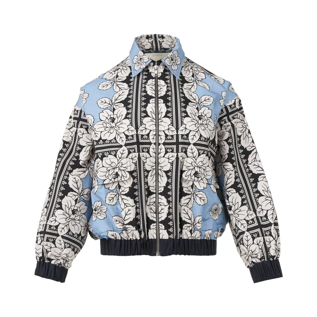 300048526BLU-SS / P5SJ/SS25/004/00/BLUE - BLACK - Reversible design with two distinct print patterns - Front zip closure with metallic hardware - Ribbed collar, cuffs, and hem - Regular bomber jacket fit - Intricate floral and geometric print combination - Premium cotton construction - Stand-up collar design Biyan Cotton Print Reversible Bomber delivers versatile luxury with dual-wear functionality and intricate floral artistry. Crafted from premium cotton featuring ornate floral motifs on a blue and black geometric backdrop, offering two distinct styling options in one piece. The reversible construction showcases Biyan's signature Indonesian-inspired prints with ribbed collar and cuffs for contemporary sophistication.