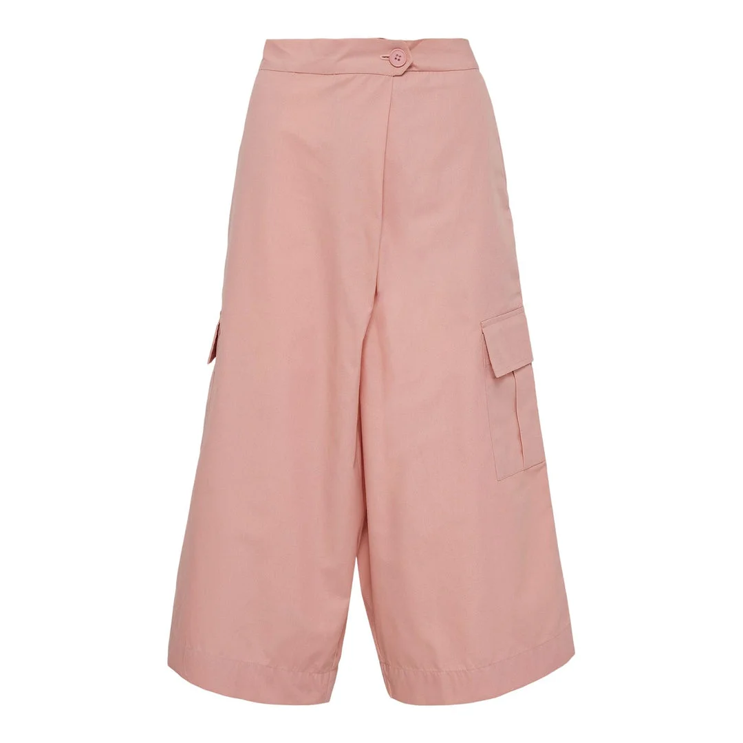600071832PNK00S / SP/SS25/009/00/Pink - Wrap-front design with button closure - High-waisted silhouette - Wide-leg cut - Cargo pockets on both legs - Premium cotton construction - Relaxed fit - Unlined design Studio 133 Biyan Cotton Wrapped Pants deliver contemporary elegance with innovative wrap-front construction and wide-leg silhouette. Crafted from premium cotton in sophisticated dusty rose, featuring cargo pockets and button closure at the waist for both style and functionality. The architectural draping and modern tailoring create a statement piece that bridges luxury and everyday sophistication.