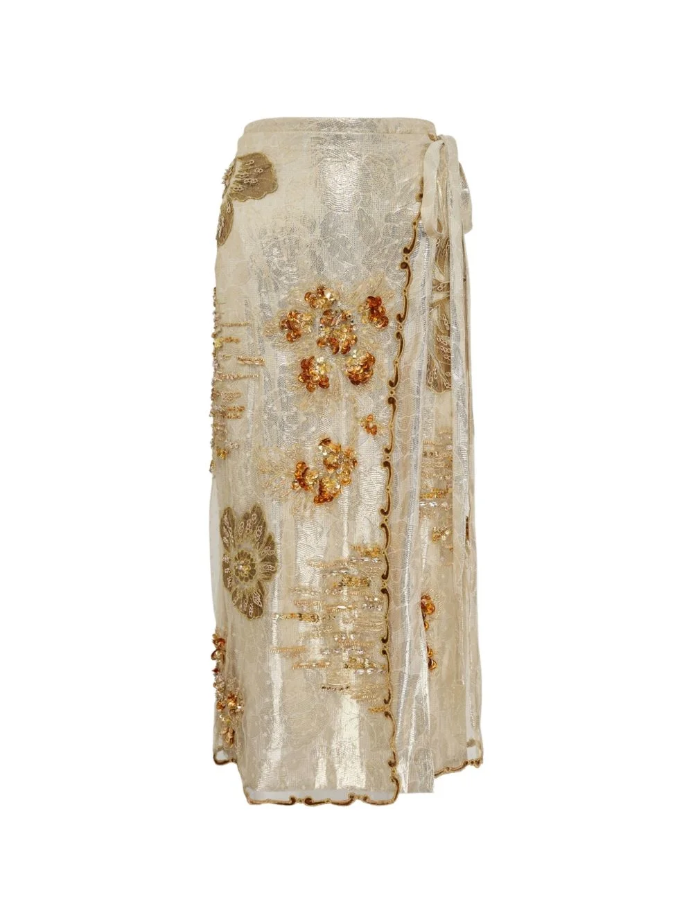 sequin-embellished tulle skirt Highlights - Beige - Floral embellishment - Wrap design - Tie detail - Scalloped trim Imported Composition Fabric 100% Washing instructions Read Manufacturer Guidelines