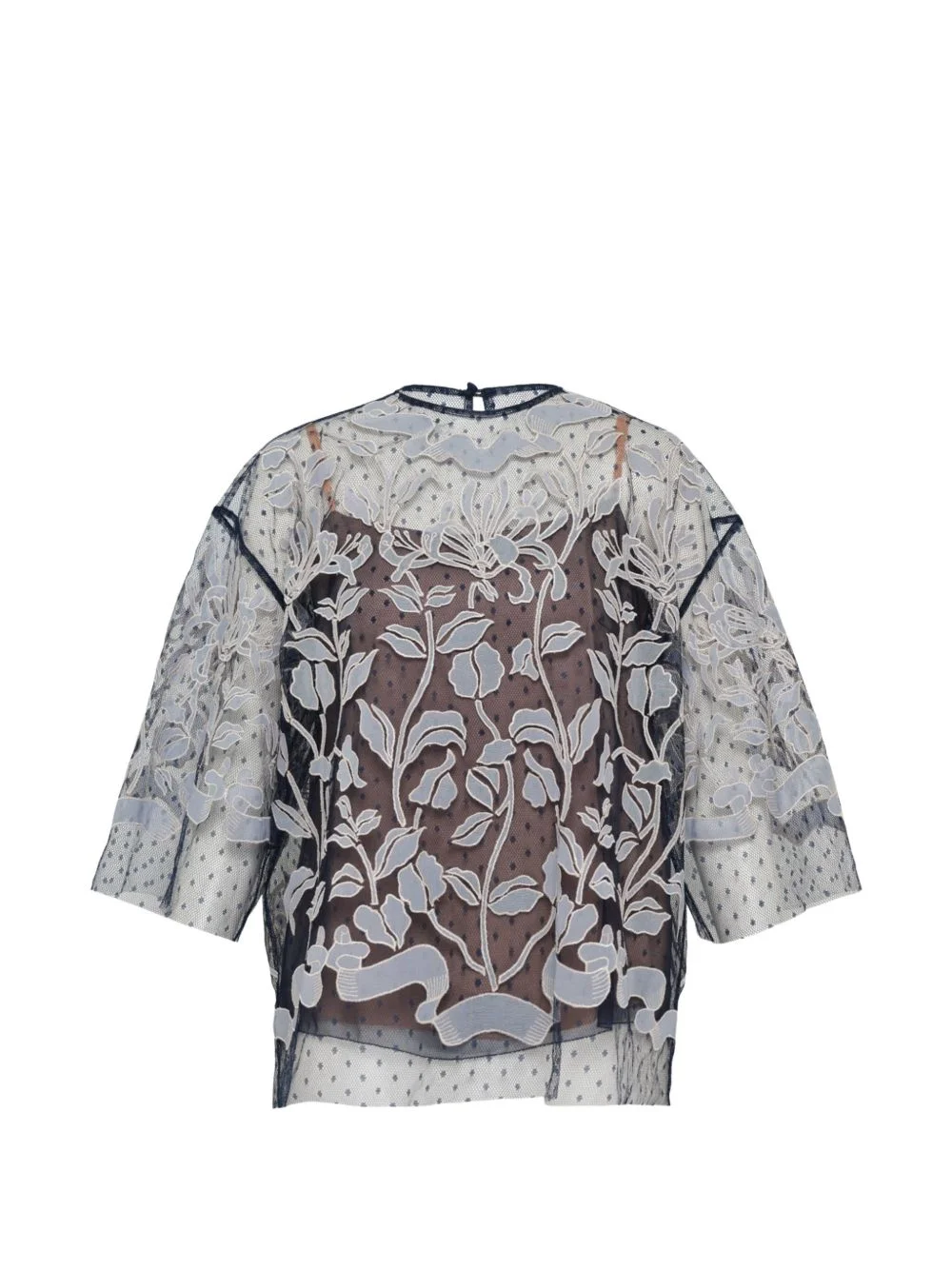 tulle embroidered layered top Highlights - Navy blue - Dot pattern - Embroidery detail - Tulle overlay Imported Composition Fabric 100% Washing instructions Read Manufacturer Guidelines