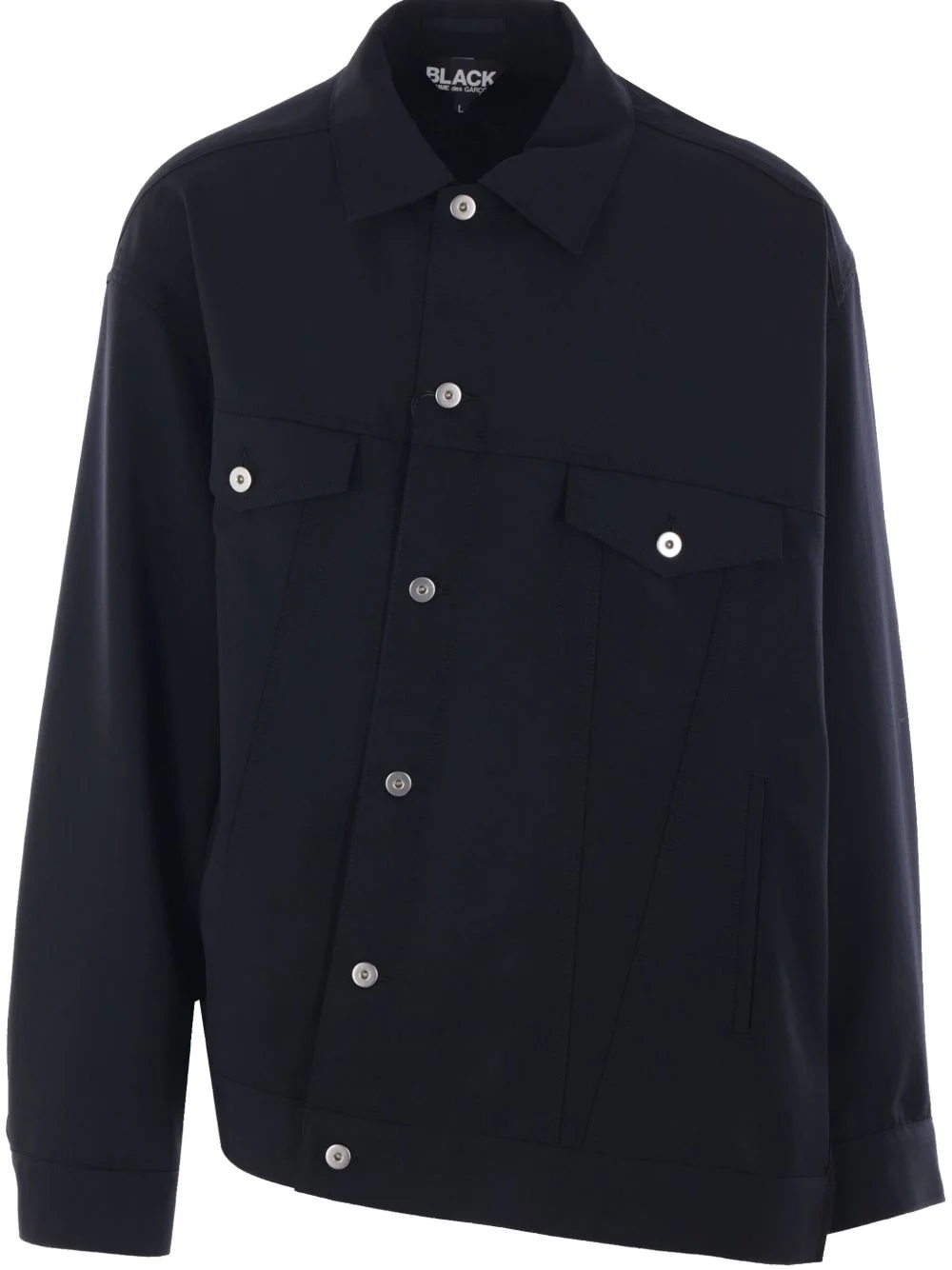 asymmetric gabardine jacket Highlights - Black - Front button fastening - Two chest flap pockets - Buttoned cuffs - Drop shoulder Imported Composition Wool 100% Washing instructions Read Manufacturer Guidelines