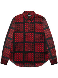 check-print long-sleeve shirt Highlights - Black/red - Check print - Classic collar - Long sleeves - Buttoned cuffs - Front button fastening - Curved hem - When buying this unisex item, keep in mind that it is graded in standard men's sizing. Imported Composition Polyester 100%