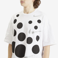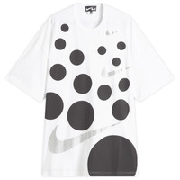 Continuing the longstanding collaboration with the Swoosh, Comme des Garcons Black merges the old with the new, creating pieces that are instantly collectible and ultra wearable. This boxy, oversized graphic tee spotlights signature CDG Black polka dots with metallic Nike Swoosh branding in tow. Cool, casual, comfortable. - 100% Cotton - Oversized Fit - Printed Branding - Made in Japan