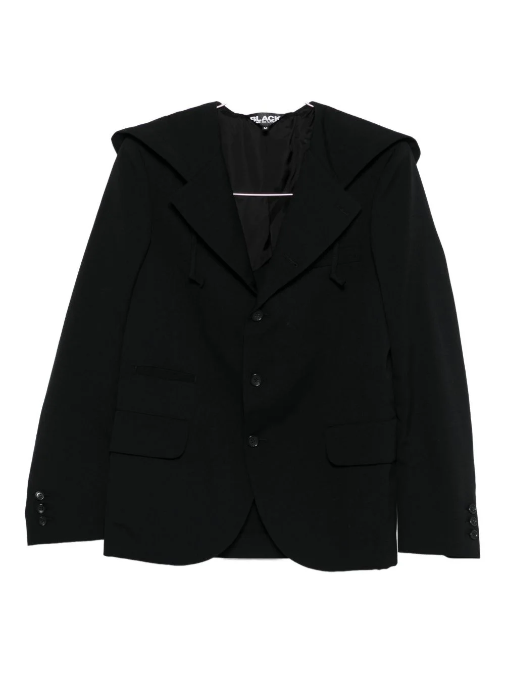 hooded jacket Highlights - Black - Flap pockets - Button cuffs - Notched lapels - Long sleeves - Straight hem Imported Composition Wool 100% Washing instructions Read Manufacturer Guidelines