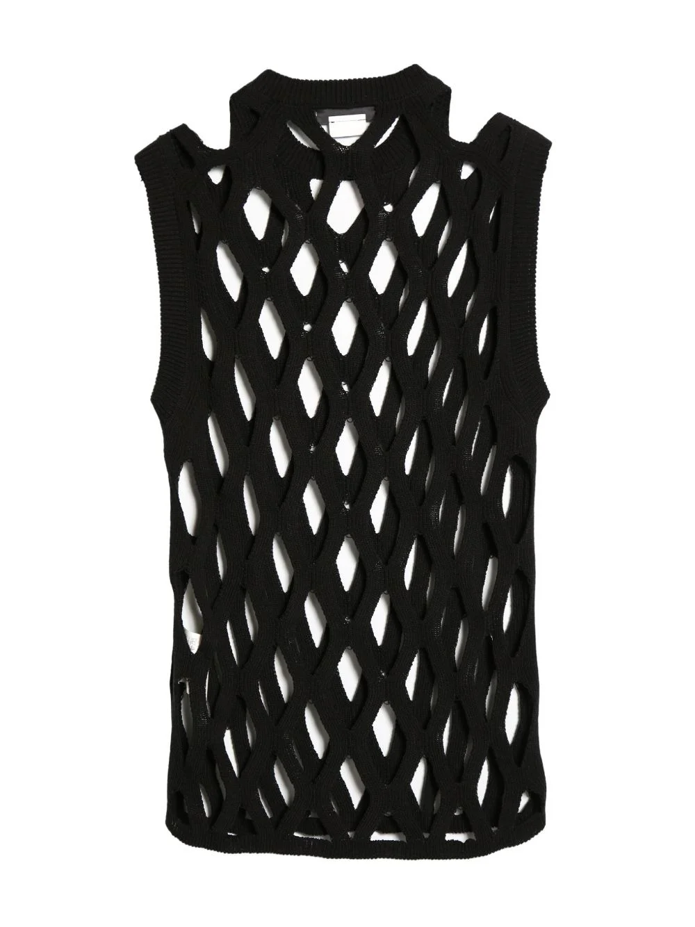 mesh knit top Highlights - Black - Net knit - Sleeveless - Round neck - Cut-out details - Loose fit Imported Composition Acrylic 100%