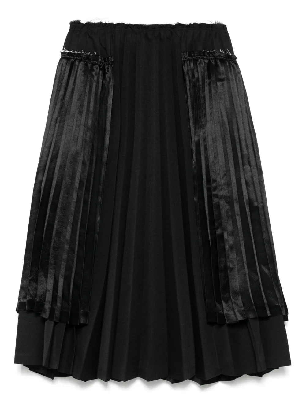 pleated midi skirt Highlights - Black - Concealed rear hook and zip fastening - Raw-cut waistband - Panelled design Imported Composition Acetate 100%, Polyester 100% SIZE & FIT Model measurements Height 5 ft 11 in(1.8 m) Bust/Chest 31.49 in(80 cm) Hips 35.82 in(91 cm) Waist 24.8 in(63 cm)