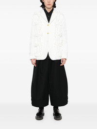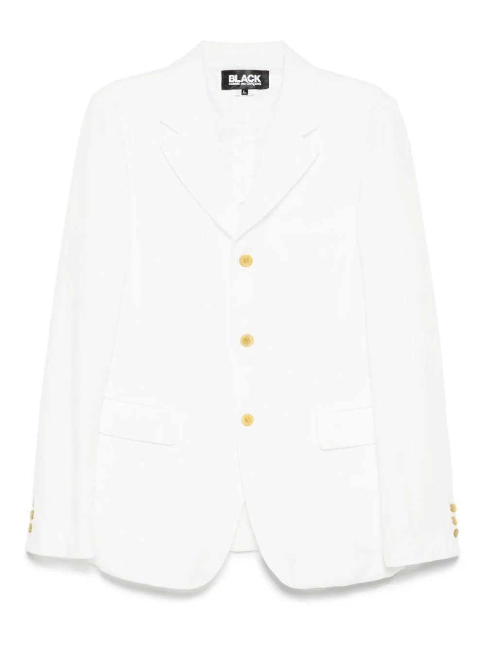 single-breasted blazer Highlights - White - Front button fastening - Chest welt pocket - Two front flap pockets - Buttoned cuffs Imported Composition Lining: Polyester 100% Outer: Polyester 100% SIZE & FIT Model measurements Height 5 ft 9 in(1.76 m) Bust/Chest 31.1 in(79 cm) Hips 35.03 in(89 cm) Waist 24.4 in(62 cm) FittingInformation This piece is unisex – expect a slim fit if you usually select men's sizing; expect a looser fit if you usually select women's sizes Made from a midweight non-stretch fabric