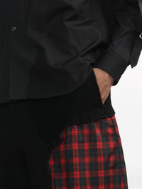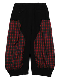 tartan-check panel trousers Highlights - Black - Rose red - Wool blend - Tartan check pattern - Contrasting panel detail - Wide leg - Elasticated waistband - Two side inset pockets - Rear welt pocket - Rear flap pocket - When buying this unisex item, keep in mind that it is graded in standard men's sizing Imported Composition Wool 90%, Nylon 10%
