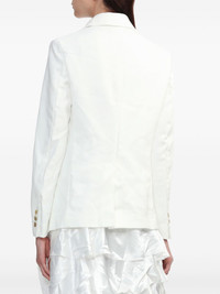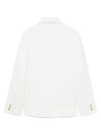 rounded-collar single-breasted jacket Highlights - White - Metallic threading - Rounded collar - Long sleeves - Front button fastening - Two side flap pockets - English rear vents - When buying this unisex item, keep in mind that it is graded in standard men's sizing. Imported Composition Polyester 100% Washing instructions Read Manufacturer Guidelines