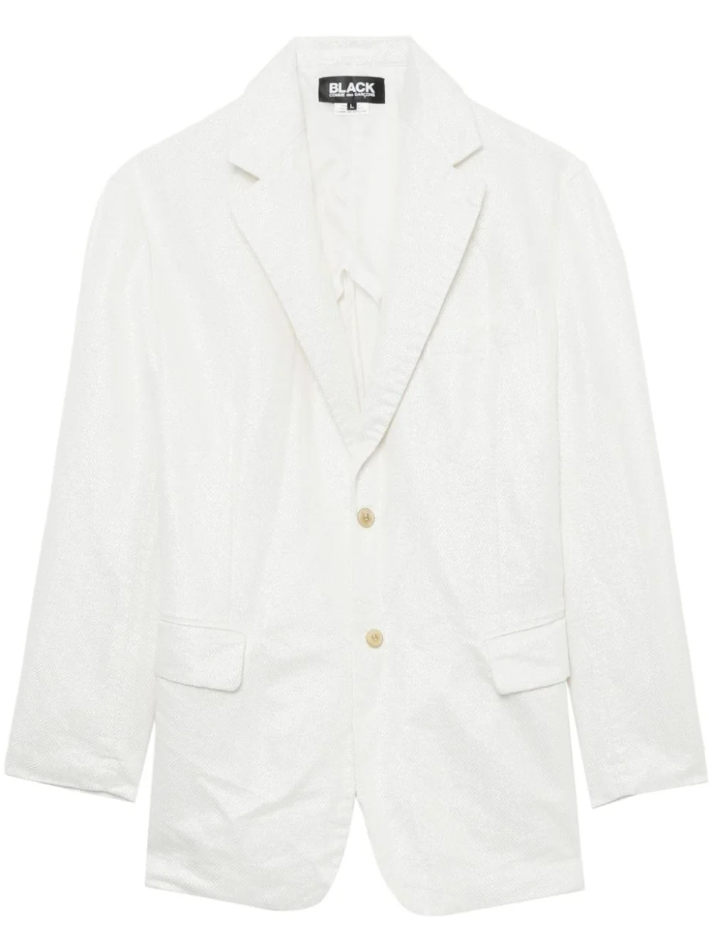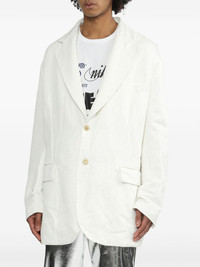 asymmetric single-breasted blazer white notched lapels long sleeves front button fastening two side flap pockets asymmetric hem When buying this unisex item, keep in mind that it is graded in standard men's sizing. Imported Composition Polyester 100%
