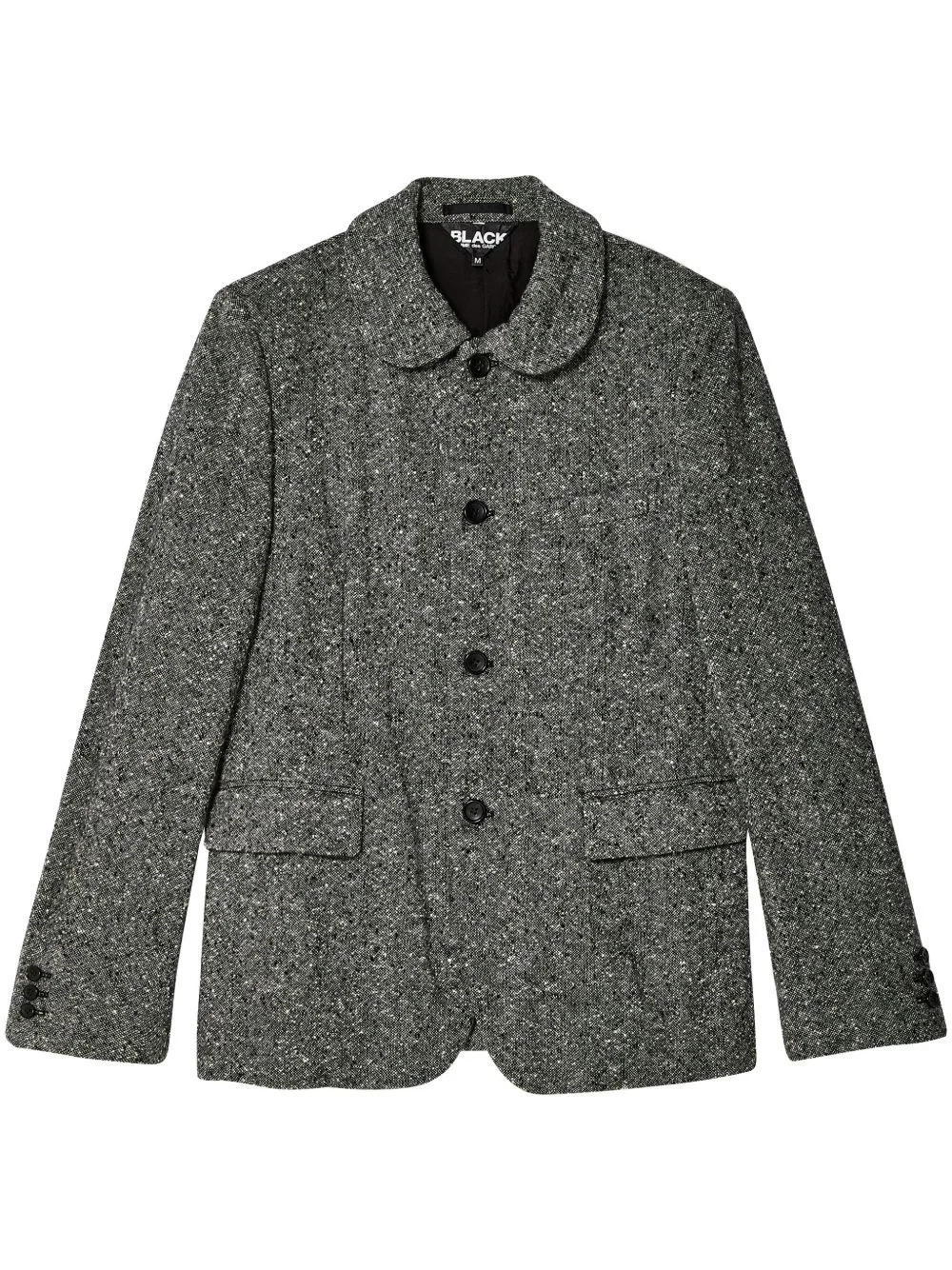 wool-blend blazer Highlights - Grey - Wool blend - Melange effect - Front button fastening - Peter pan collar - Chest welt pocket - Two front flap pockets - Long sleeves - Buttoned cuffs - When buying this unisex item, keep in mind that it is graded in standard men's sizing. Imported Composition Wool 90%, Nylon 10% Washing instructions Read Manufacturer Guidelines
