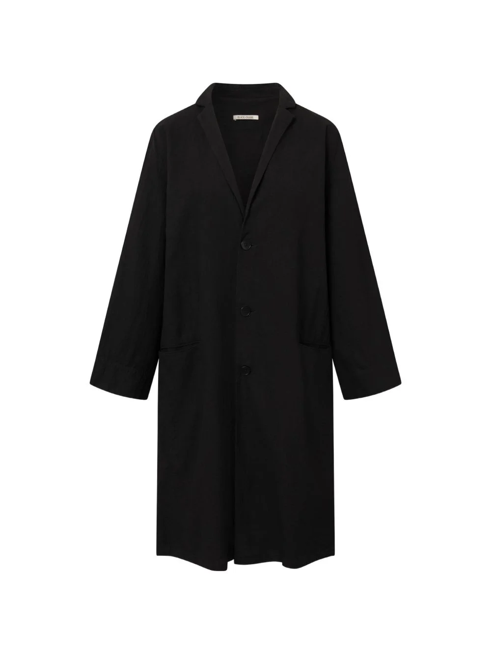 crinkled button coat Highlights - Black - Button closure - Notched lapels - Long sleeves Made in United States Composition Linen/Flax 60%, Cotton 40% Washing instructions Read Manufacturer Guidelines