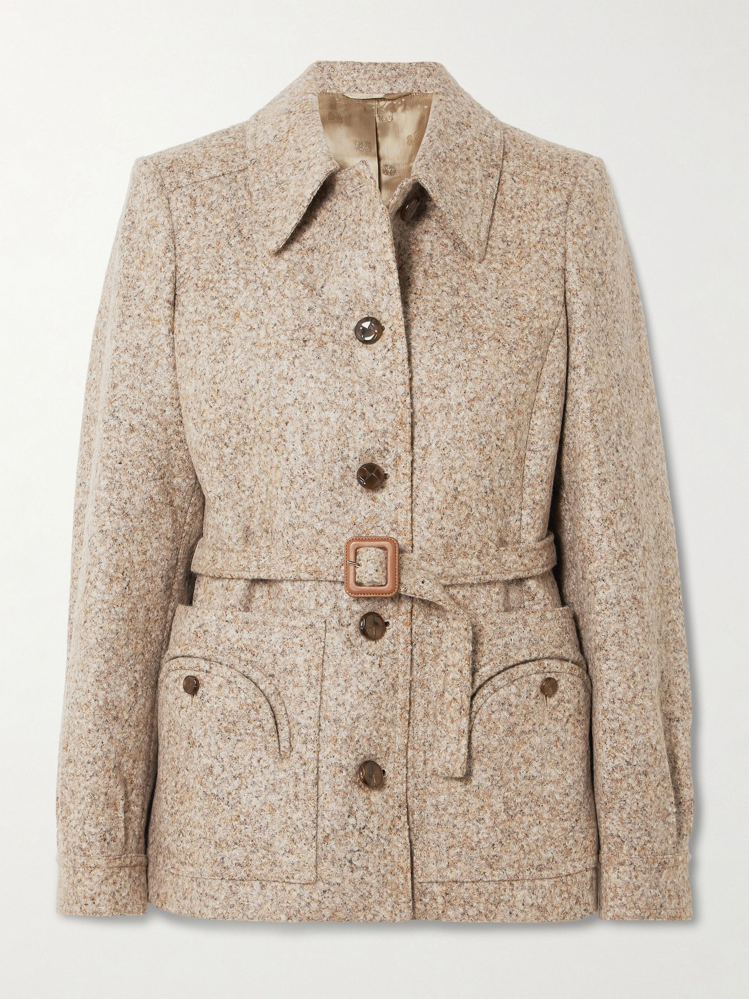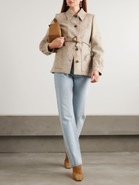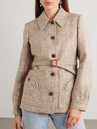 BLAZE Milano's 'Seanna Paint' jacket is made from soft alpaca and wool-blend in a flecked melange of colors. Belted to define your waist, it's detailed with the label's signature 'Smiley' pockets and quilt-effect buttons. The satin lining ensures effortless layering. Size & Fit - Size 00 = XXS, 0 = XS, 1 = S, 2 = M, 3 = L, 4 = XL - Fits true to size, take your normal size - Designed for a slightly loose fit - Internal shoulder pads - Mid-weight, non-stretchy fabric - Model is 177cm/ 5'10" and is wearing the designer's size 1 Model measurements: - Bust: 85cm/ 33” - Waist: 66cm/ 26” - Hip: 92cm/ 36” Details & Care - Tonal-beige, orange and grey melange alpaca and wool-blend - Button fastenings through front - 66% alpaca, 34% virgin wool; lining: 100% viscose - Fully lined - Dry clean - Mother-of-pearl: South Korea