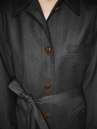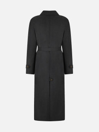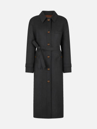 Women’s trench coat in dark grey virgin wool This virgin wool trench coat with a classic collar in sophisticated gunmetal grey boasts a tailored silhouette and loden-style buttons. The waist can be accentuated with a belt for a svelte look; unbelted it’s a chic duster, perfect for layering over silk dress. - Single-breasted - Bordeaux silk lining - Tortoiseshell-effect buttons - Classic collar - External Smiley pockets and four internal welt pockets - Waist belt 100% Virgin Wool Lining: Viscose Made in Italy