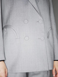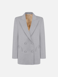Double-breasted oversize virgin wool grey blazer BLAZE Milano’s Everynight double-breasted blazer is relaxed enough to wear over various layers, like a merino polo sweater. The Arizona model is in an elegant shade of cloud-grey, with buttons covered in the same fabric. It pairs perfectly with the matching trousers. - Double-breasted - Oversized, boxy cut - Lightly padded shoulders - Cream lining - Fabric-covered buttons - Peak lapels - External Smiley pockets and four internal welt pockets 100% Virgin Wool Lining: Viscose Made in Italy